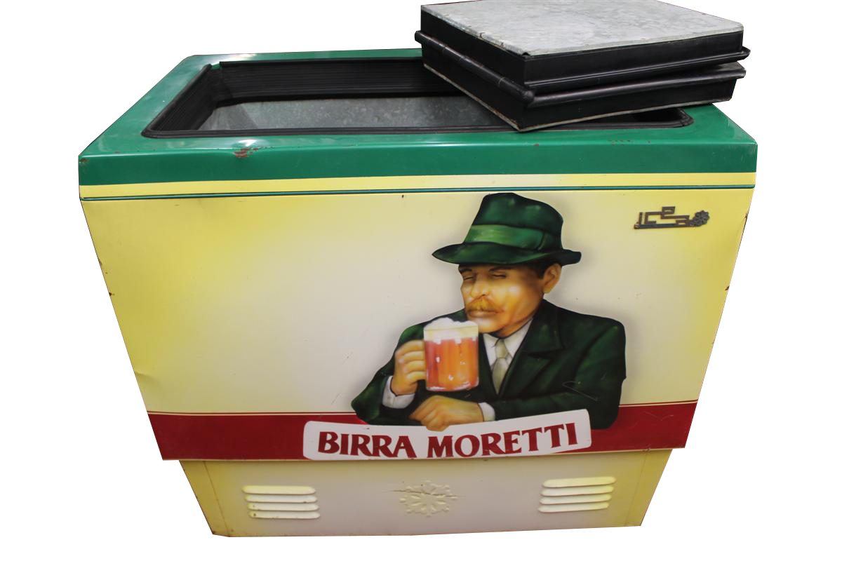 Frigorifero ghiacciaia a pozzetto da bar italiana, birra Moretti.