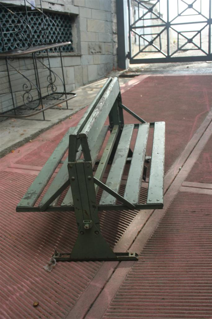 Panchina militare a doppia seduta bifacciale, richiudibile. Montata in origine su automezzo per il trasporto truppe.