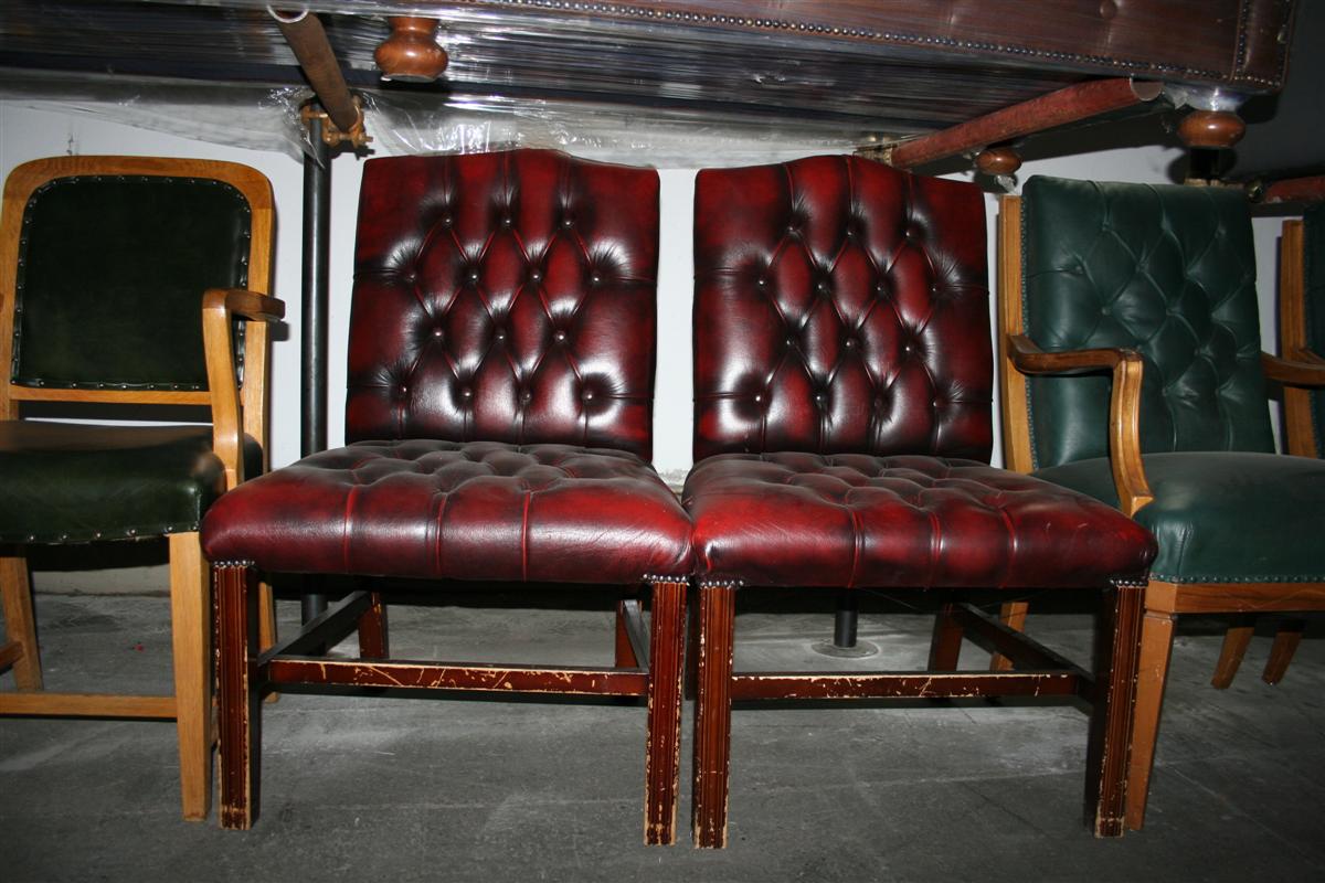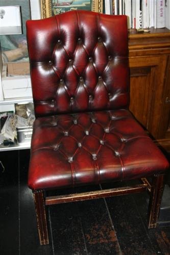 Sedia da ufficio capitonèe, struttura in mogano e rivestimento in pelle bordeaux, proveniente da ufficio inglese anni '60