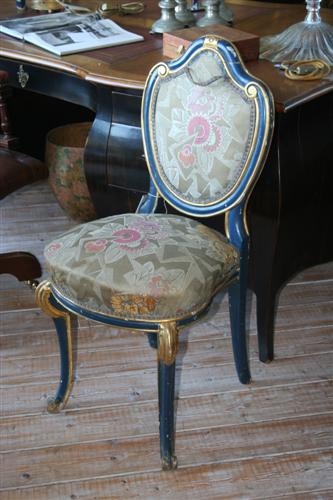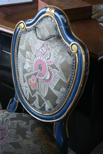 Sedia francese Luigi XV, laccatura blu originale con decori dorati intarsiati, originale della fine del '700.