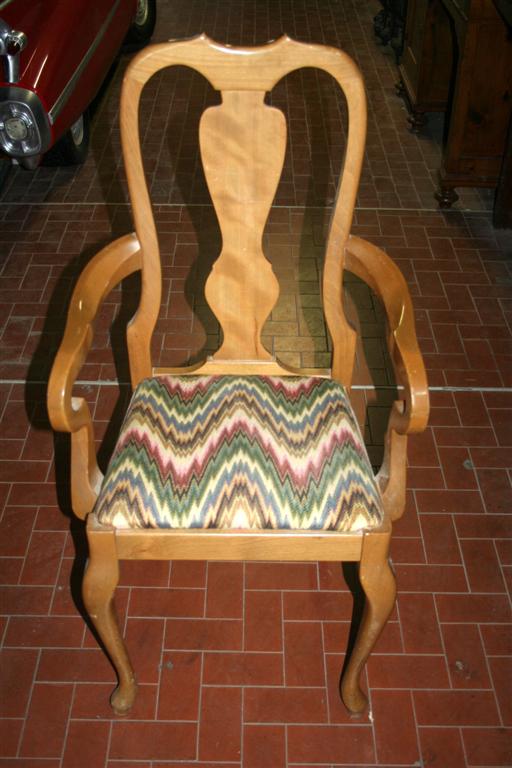 Sedia in stile chippendale in faggio, con seduta imobttita rivestita stoffa fiammata. Risalente agli anni '70 circa.