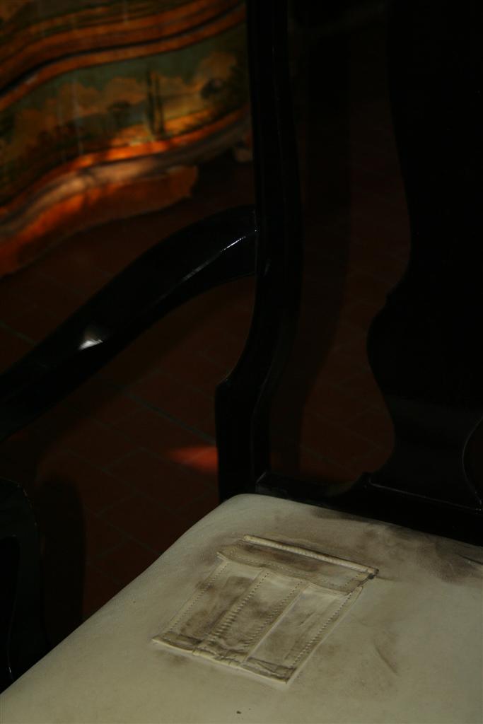 Sedia in stile chippendale in faggio, laccata e rivestita in pelle.