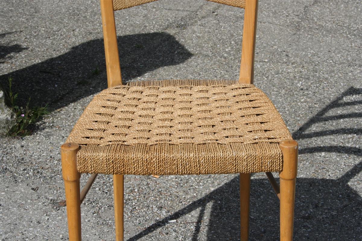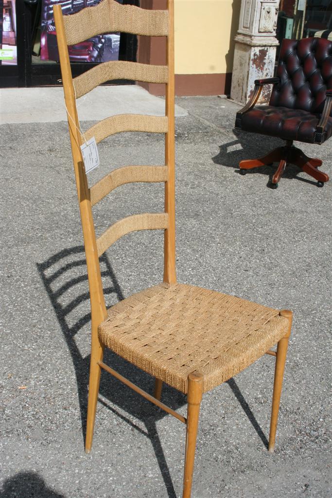 Sedia impagliata rustica con schienale alto, italiana anni '40.