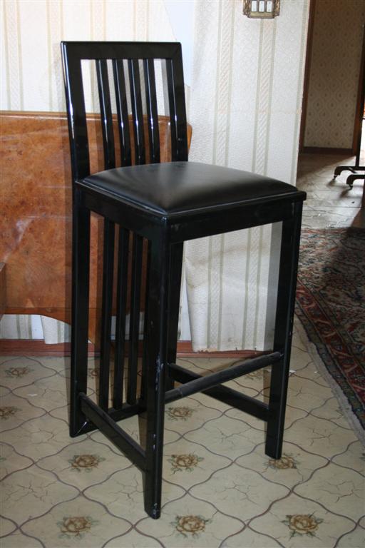 Sgabelli in legno a doghe laccato nero, design italiano anni '70. Disponibili un modello alto ed uno basso.