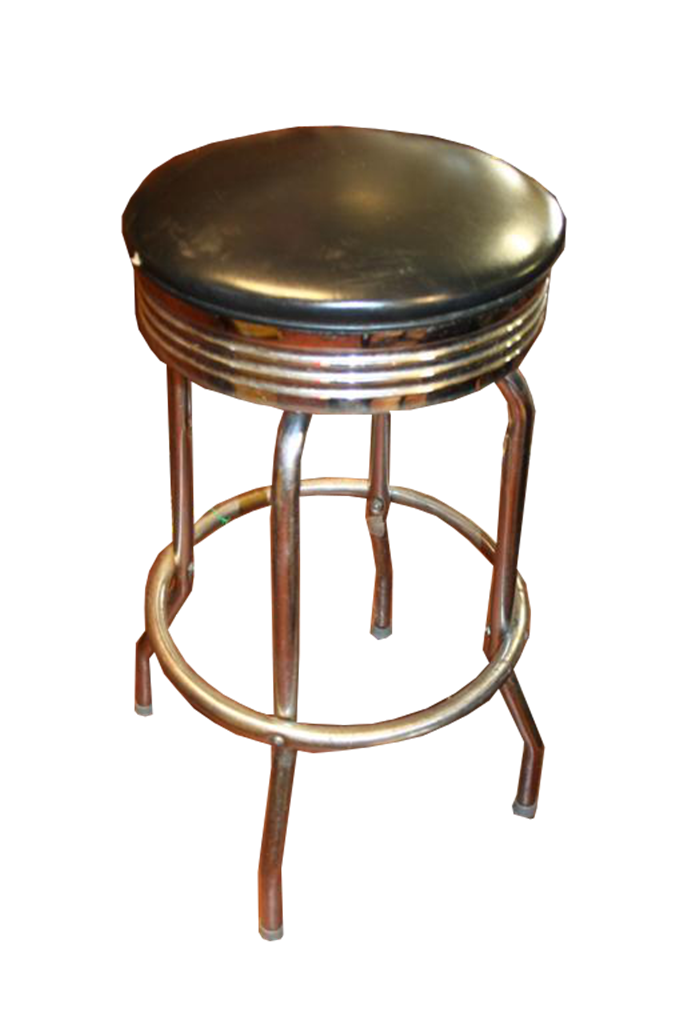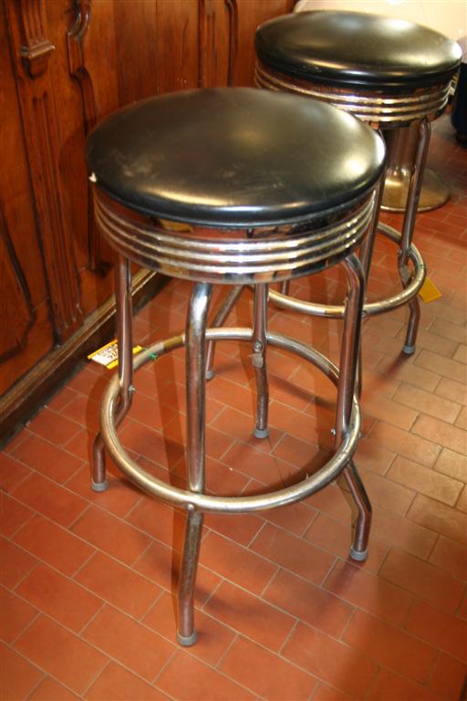 Sgabello originale americano anni '60, struttura a ragno cromata, con imbottitura in pelle nera e seduta girevole.
