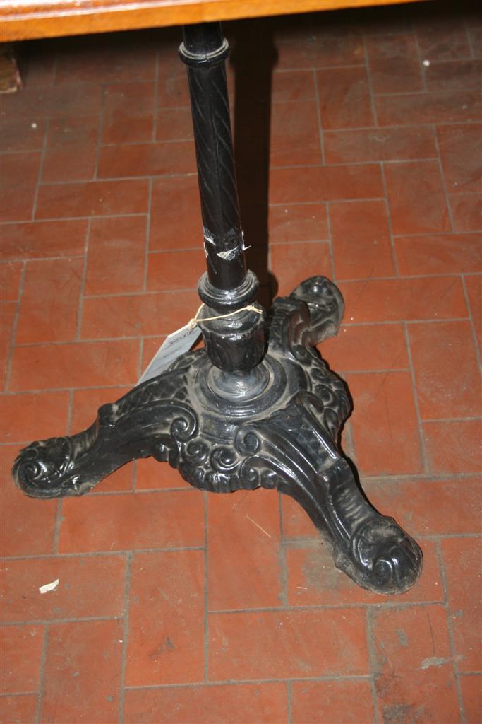 Tavolo da pub con piano in rovere quadrato e base in ghisa lavorata.