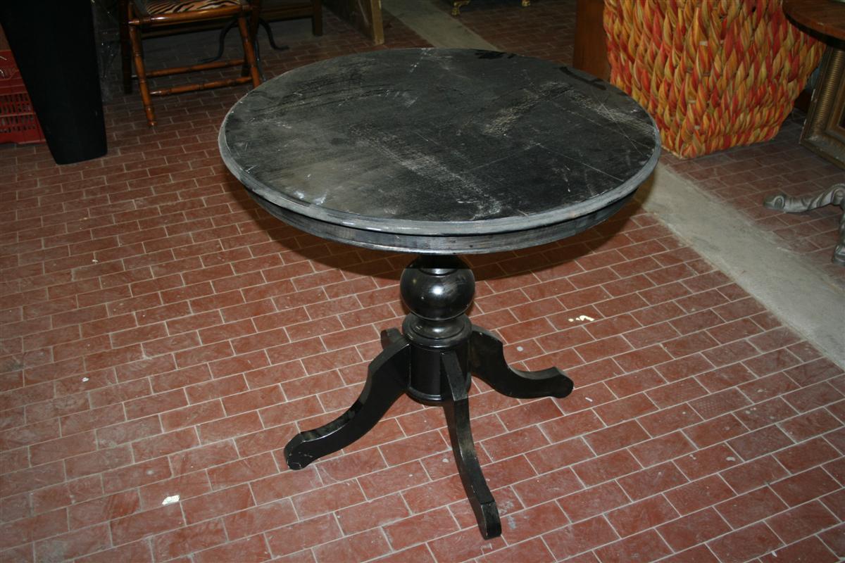 Tavolino tondo in stile vittoriano, laccato nero.