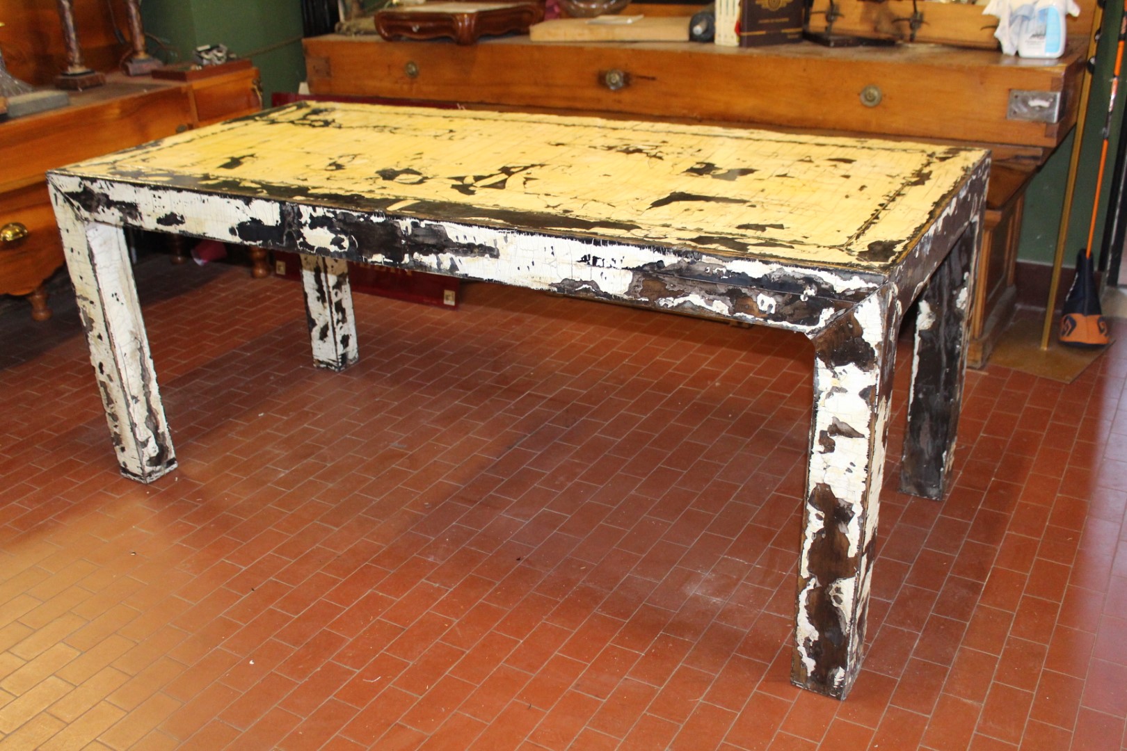 Tavolo indonesiano rettangolare shabby chic bianco.