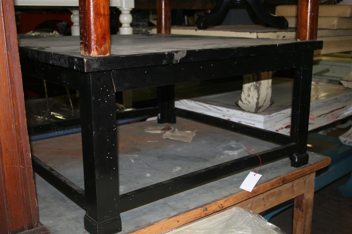 Tavolino da salotto quadrato, in legno di faggio, laccato nero.