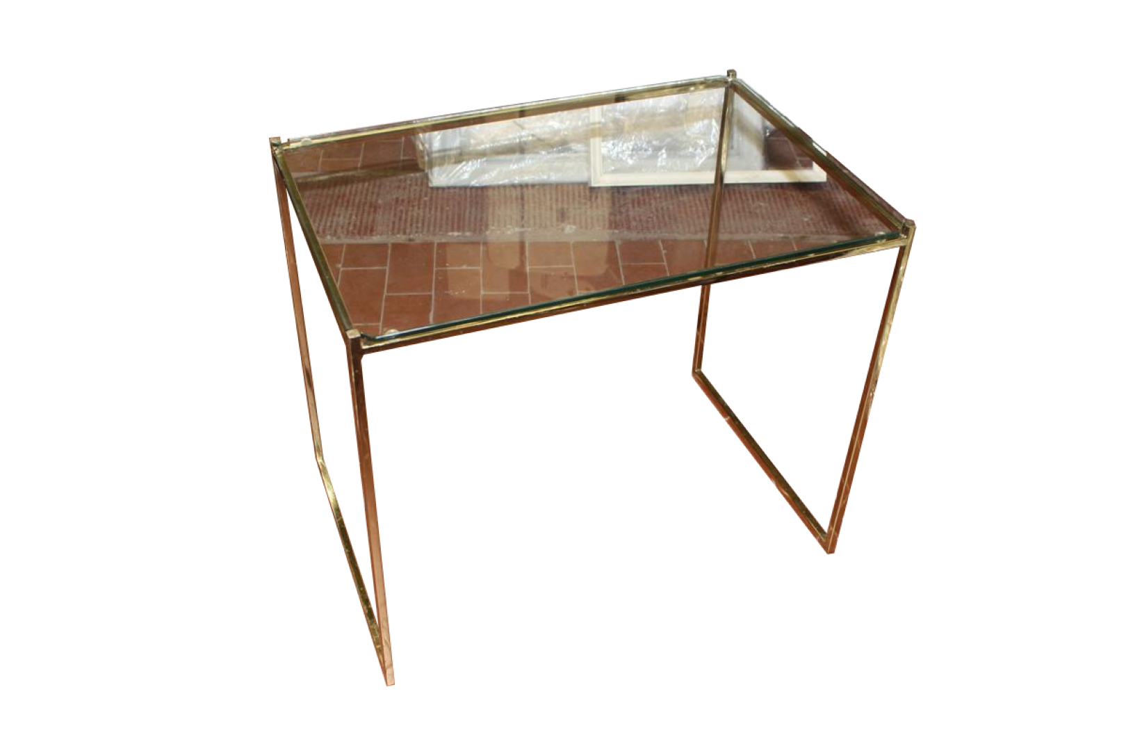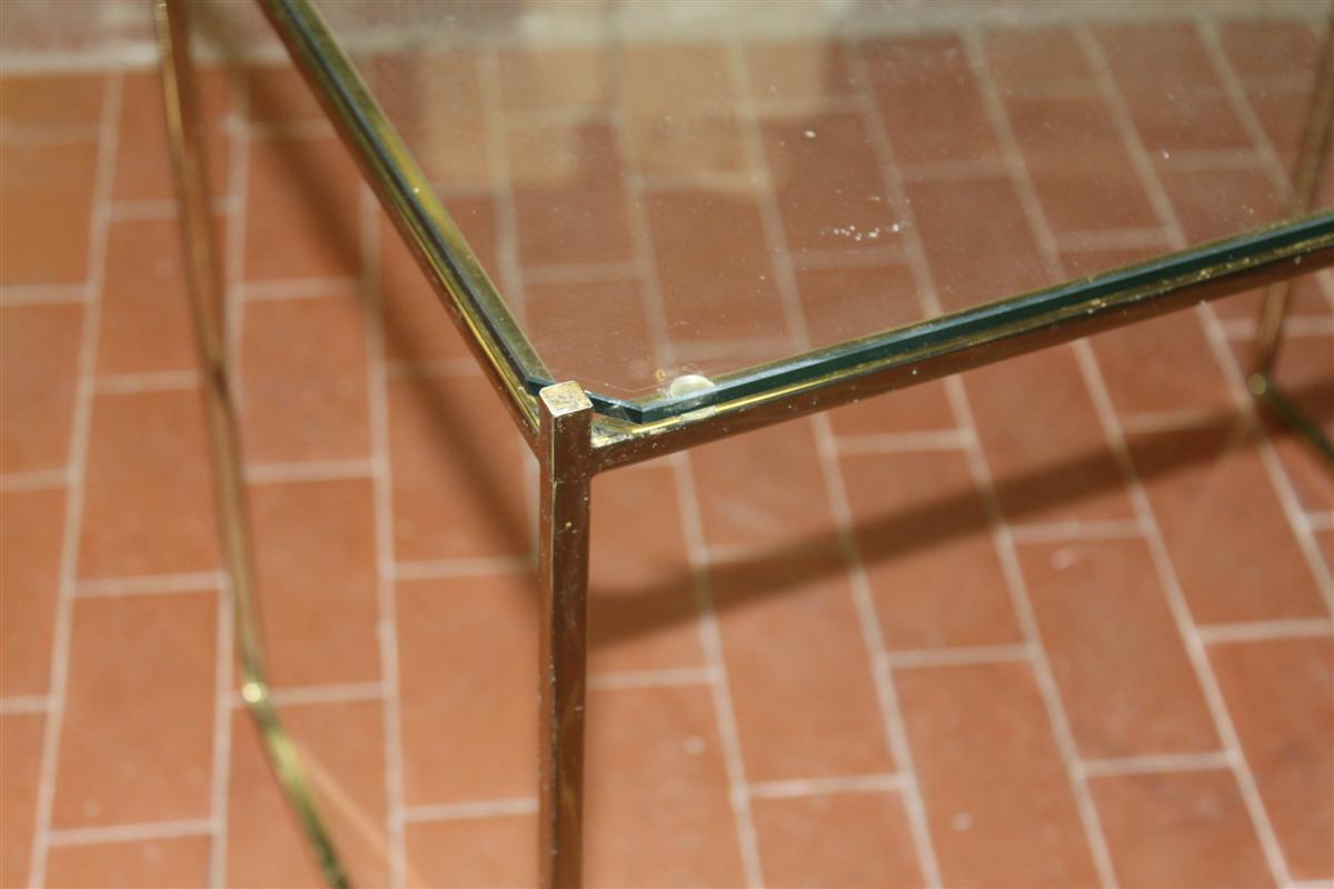 Tavolino da salotto anni '50 in ottone con piano in vetro