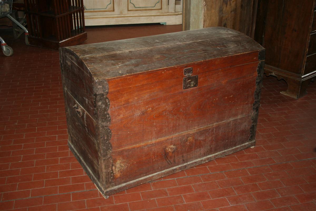 Baule stondato in legno dei primi dell'800 con doghe metallo