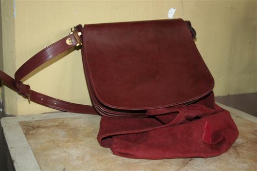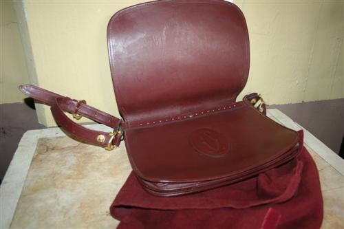 Borsetta da donna in pelle bordaeux marchiata Cartier, originale vintage anni '70.