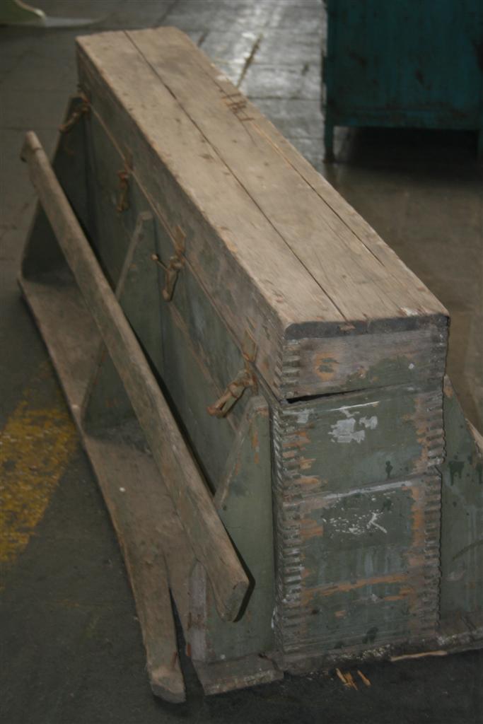 Cassa millitare portamunizioni in legno con manici, da carico.
