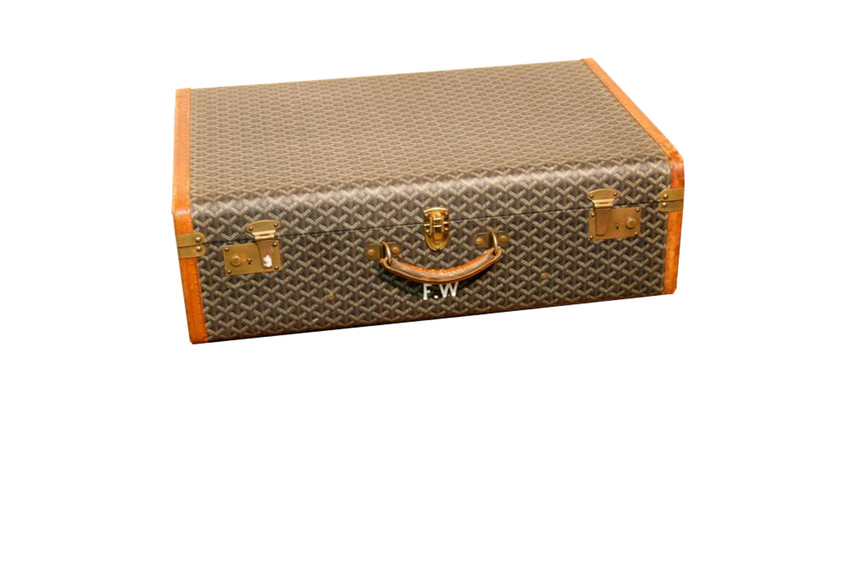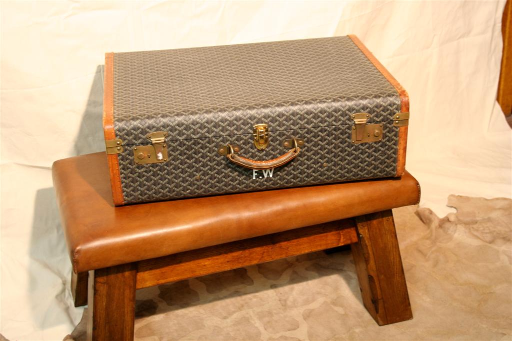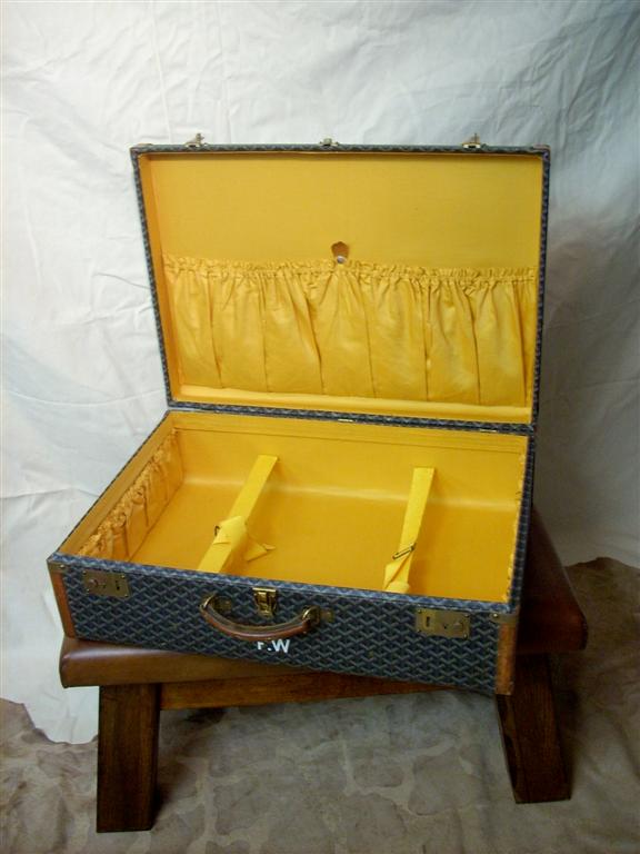 G&H Tatterton Best antique store Valigia Goyard vintage originale in pelle rigida con damier, con iniziali F.W. su un fianco.