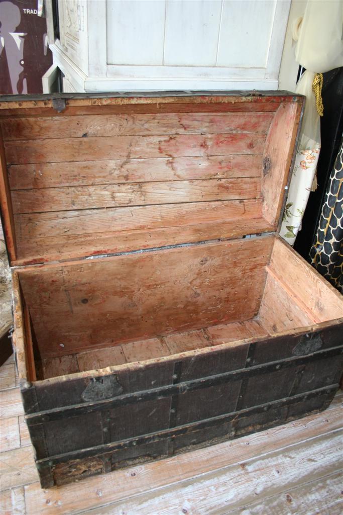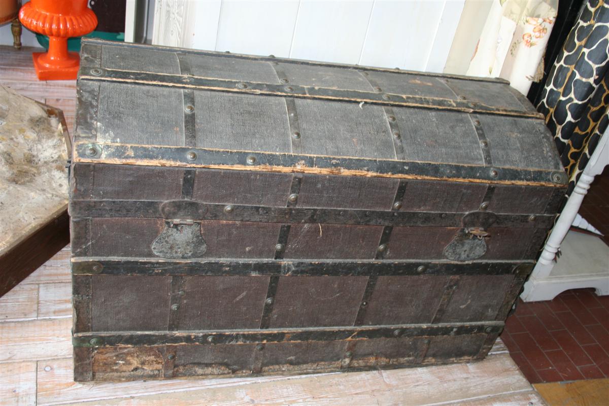 Baule stondato in legno, rivestito in tela si canapa, dei primi dell'800 con doghe.