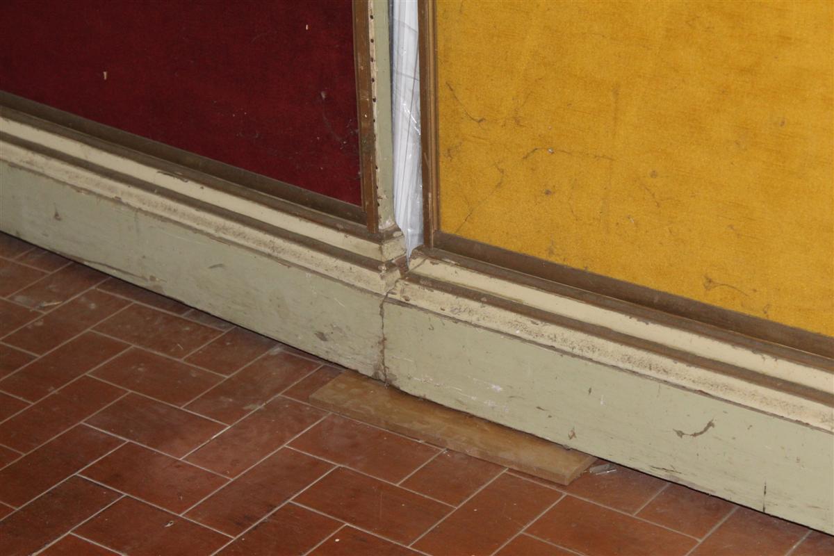 Boiserie in legno con velluto, disponibile con velluto color senape e con velluto color bordeaux.
