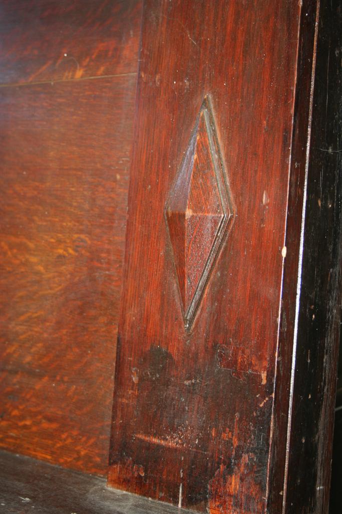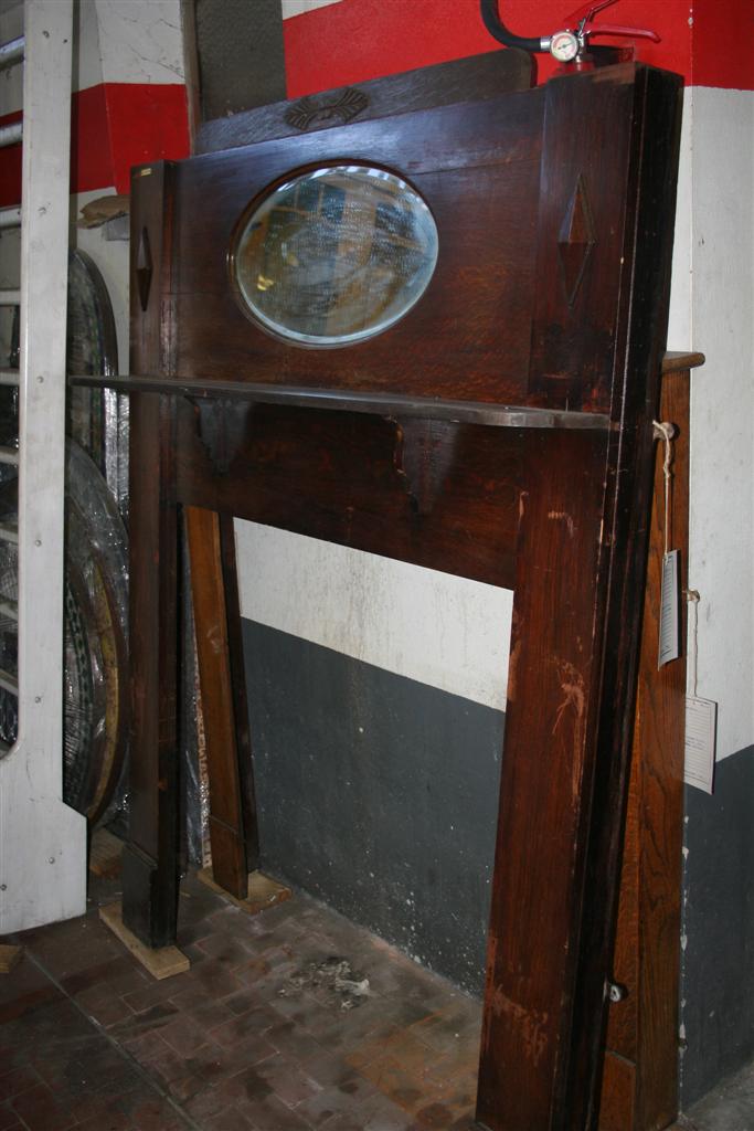 Camino inglese in mogano con specchiera ed decori intarsiati.