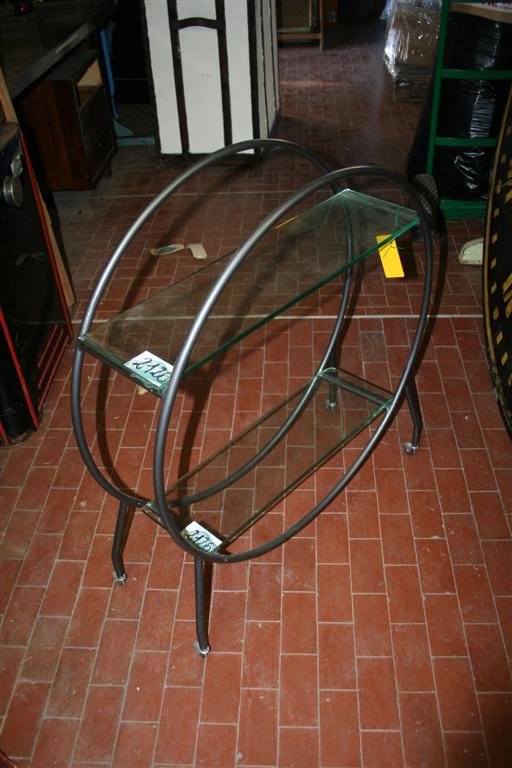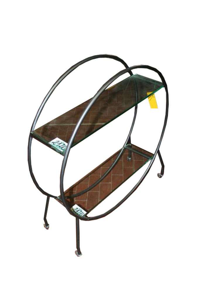 Carrellino in ferro stondato con ruote, con 2 mensole vetro.