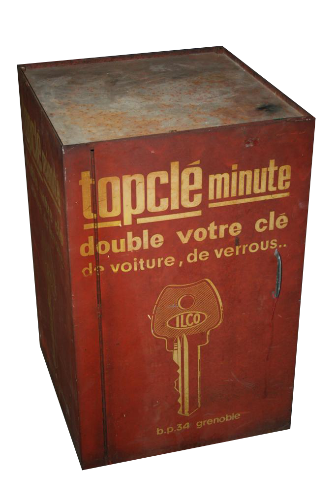 Il mobiletto era parte della dotazione di riproduzioni chiavi e serrature, data alle ferramente dalla ILCO, storica azienda italiana del settore ad oggi facente parte della SILCA.