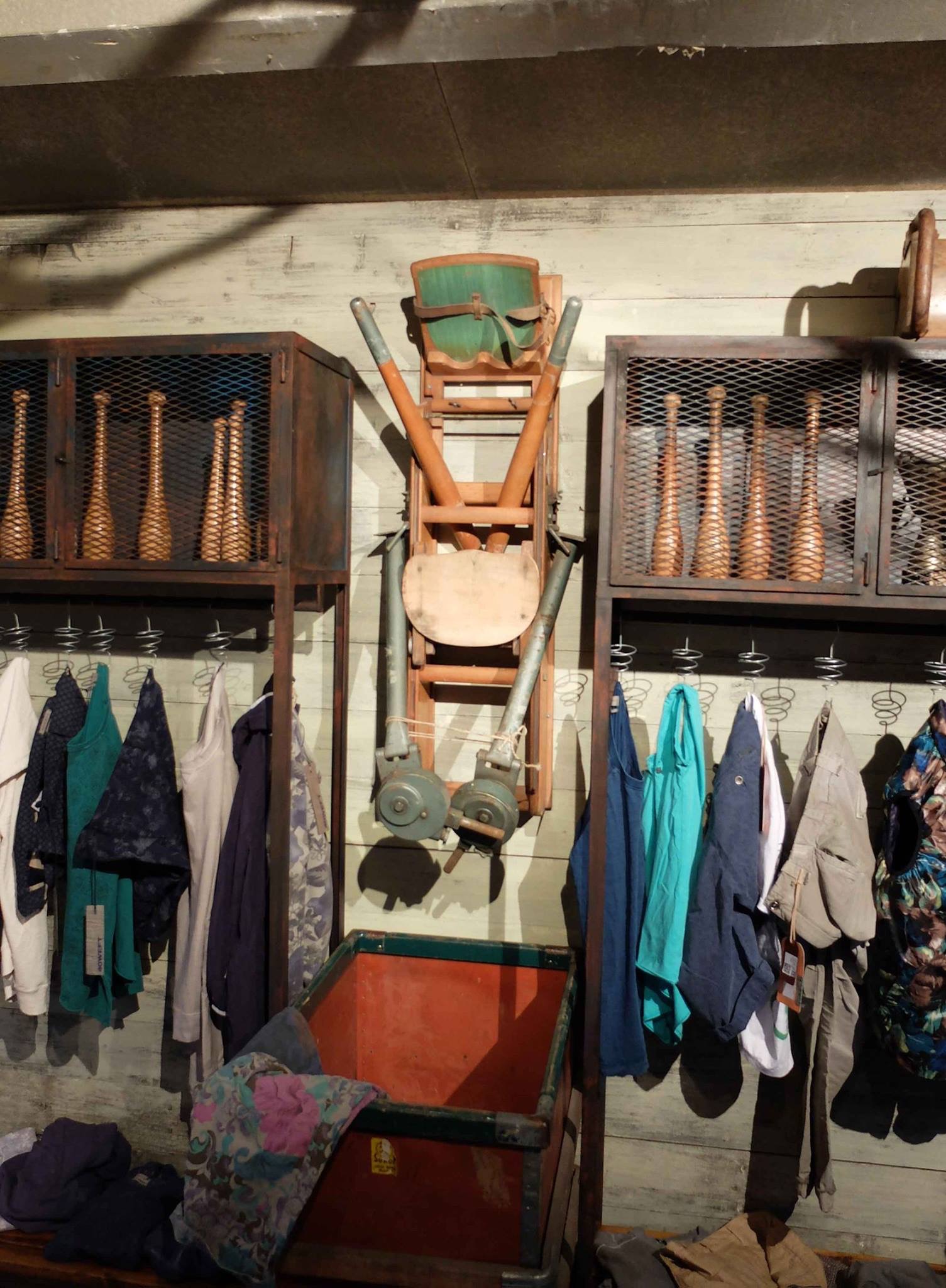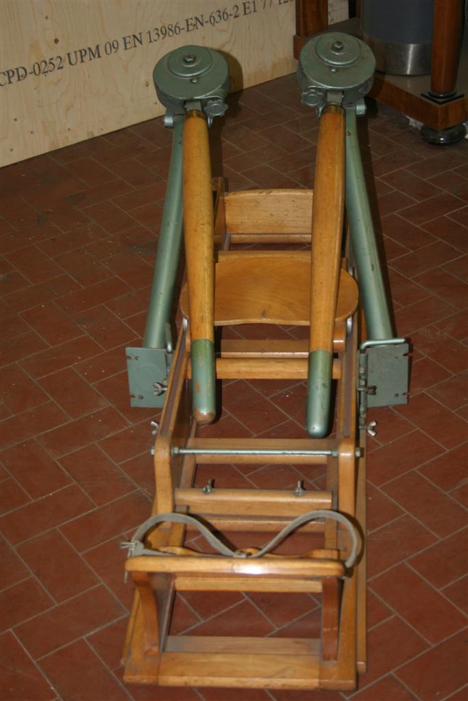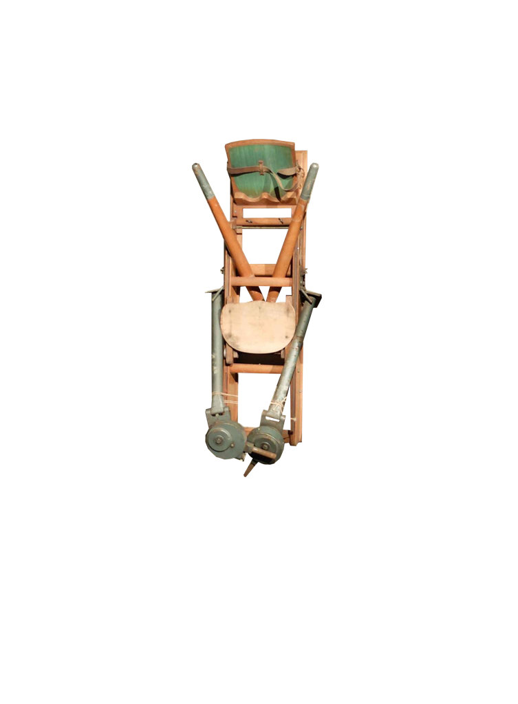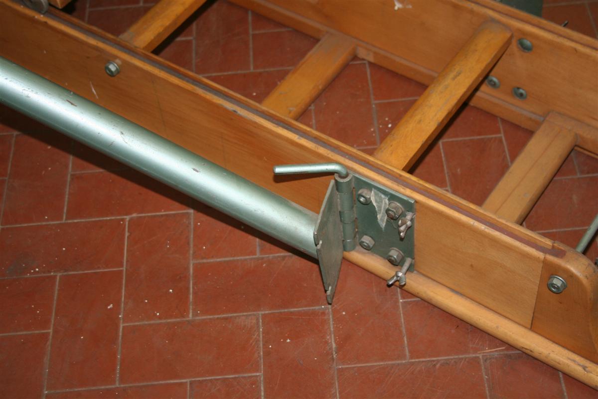 Vogatore da palestra vintage in legno e ferro, richiudibile. Originale anni '60.
