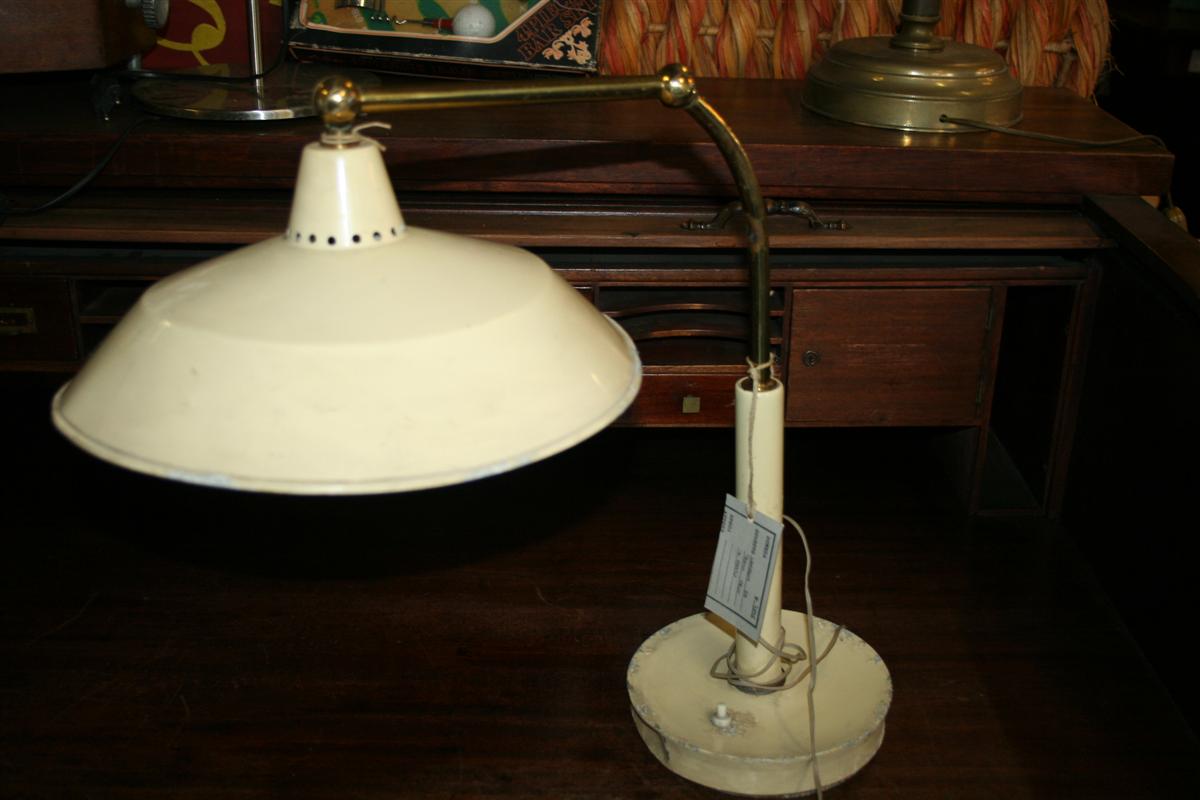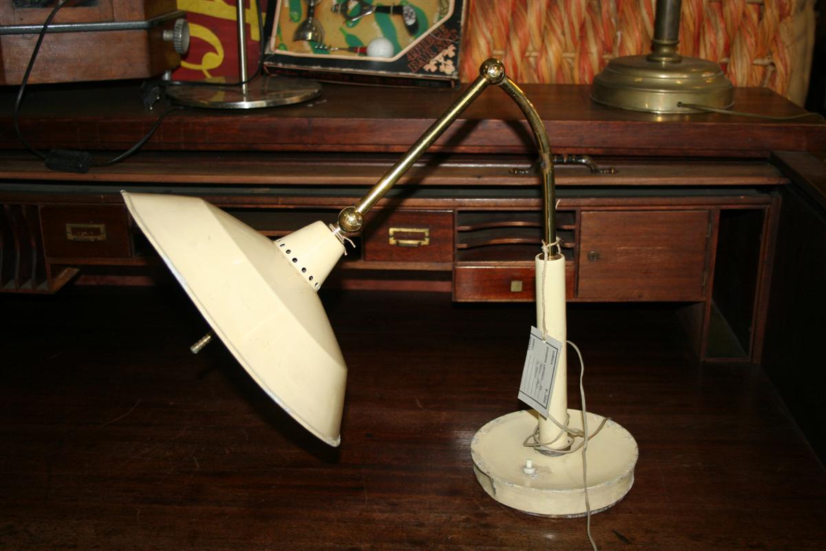Lamapda da tavolo in ottone e ferro smaltata bianca, anni 50.