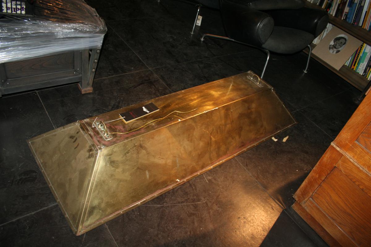 Lampada da biliardo a sospensione originale in ottone. La parte interna è smaltata per aumentare il potere riflettente.