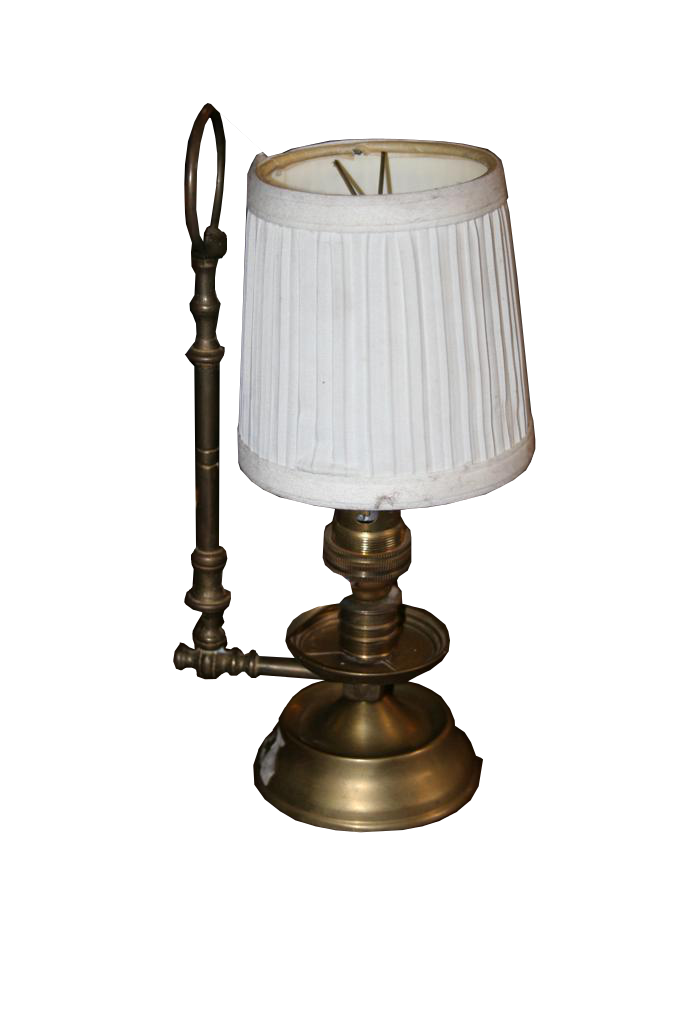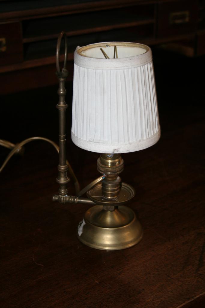 Lampada da tavolo decò in ottone, con cappello a clip.
