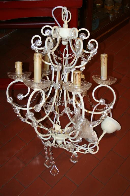 Lampadari a gocce in stile, disponibili bianchi o neri, a 5 e 6 luci. Di nuova produzione.