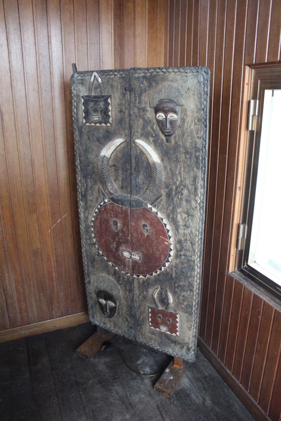 Finestra da granaio africana in legno intarsiato, primi del '900.