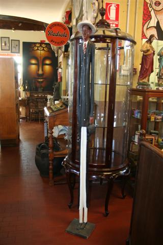 Scultura etnica in legno tradizionale africana, raffigurante uomo stilizzato con giacca grigia. Provenienza Madagascar.