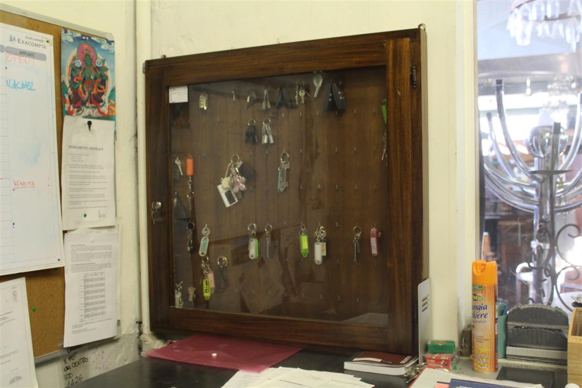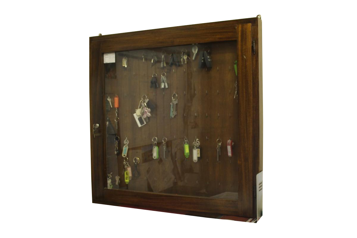 Bacheca portachiavi in rovere con vetrina, dispone di un doppio pannello, può contenere fino a 118 mazzi di chiavi