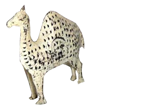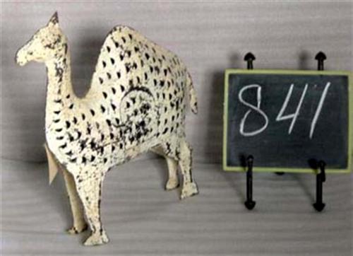 Portacandela etnico in ferro battuto, a foggia di cammello, con sportellino per accedere alla candela.