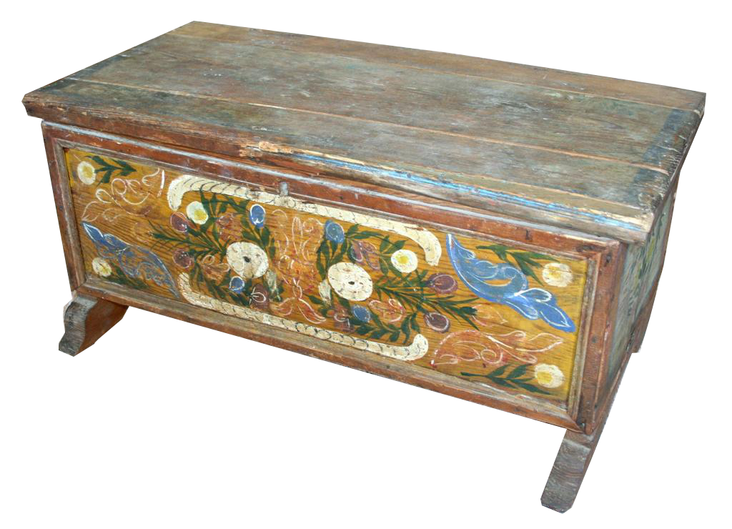 Cassa in legno nuziale dei primi del '900, decorata e dipinta a mano.