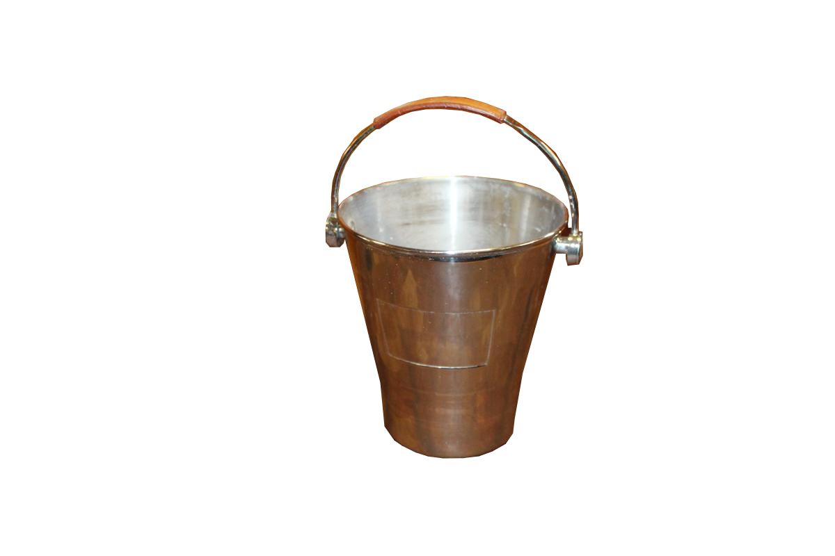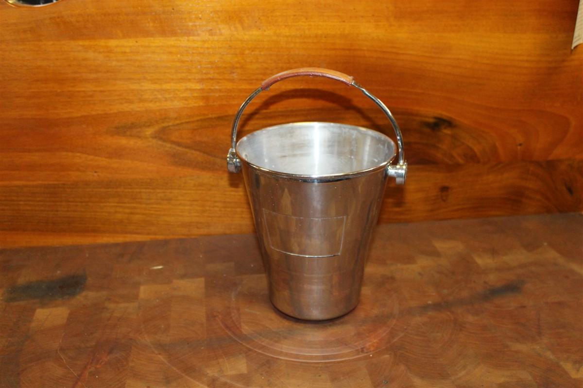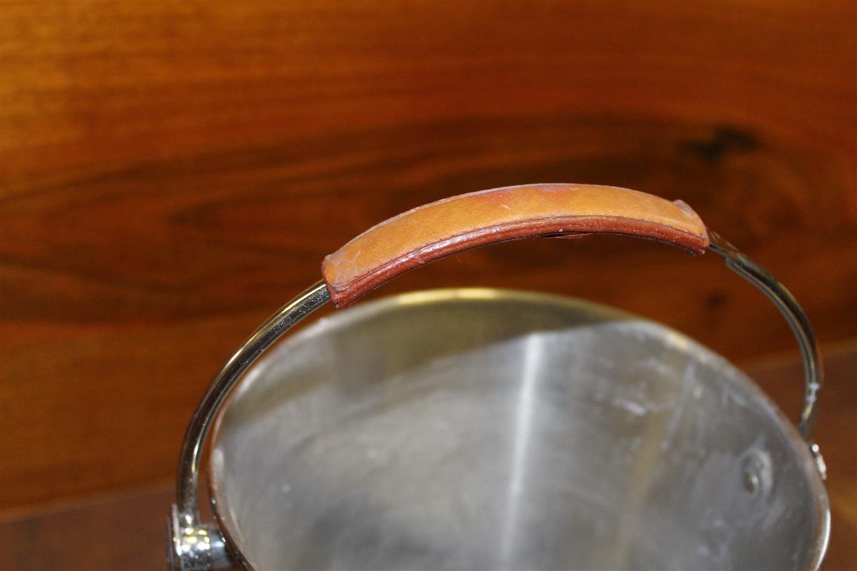Cestello portachampagne vintage, in metallo cromato, con manico rivestito in pelle