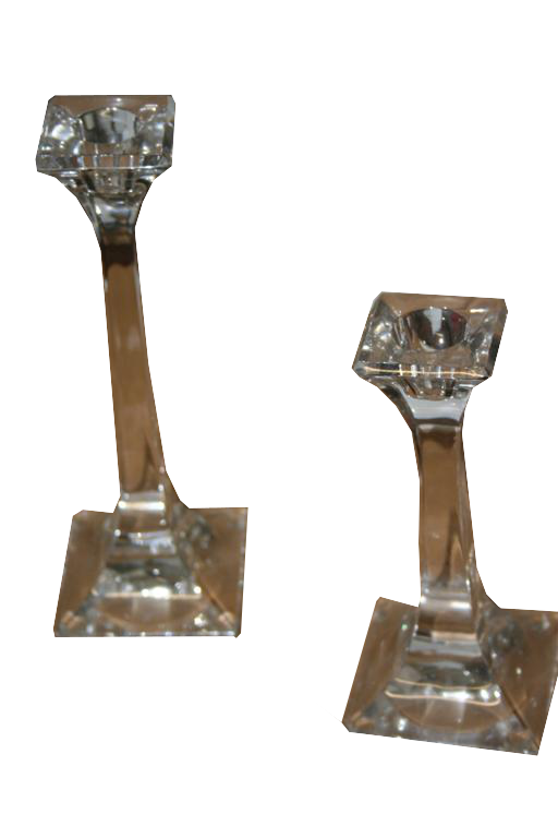 Coppia di candelabri in vetro a base quadrata.