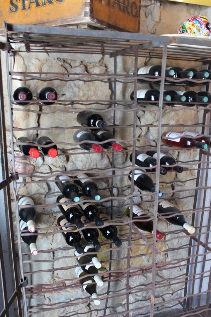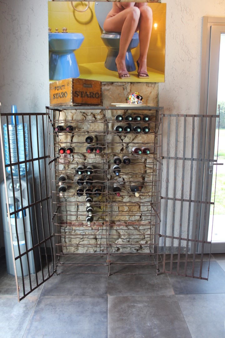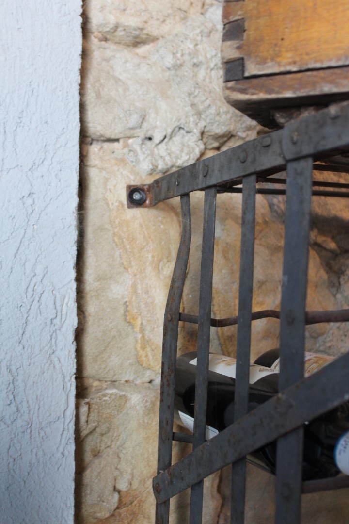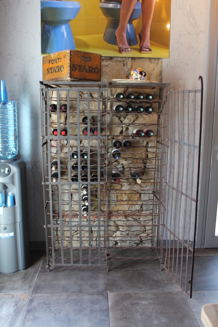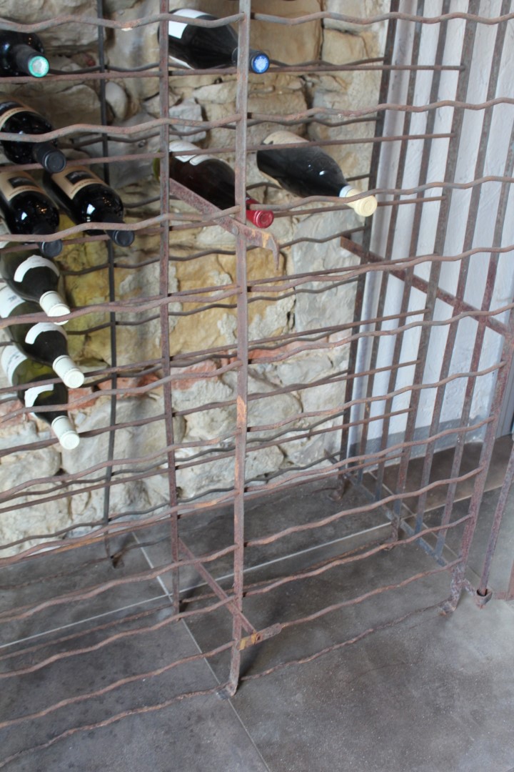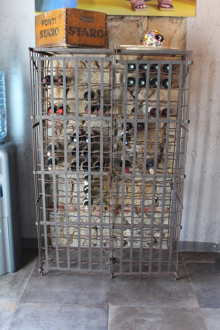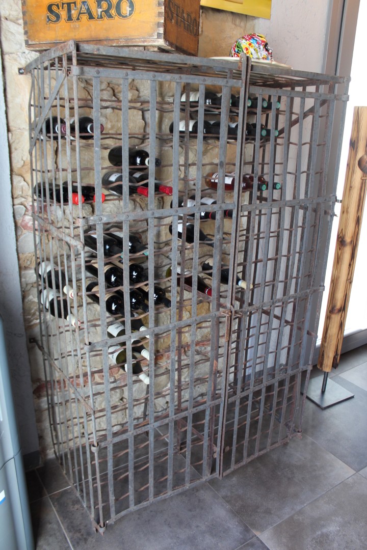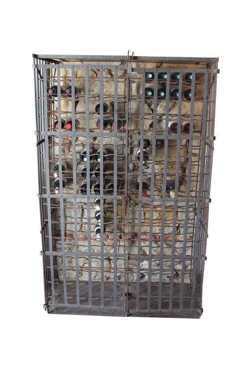 Grande portabottiglie in ferro battuto da parete, con doppia porta