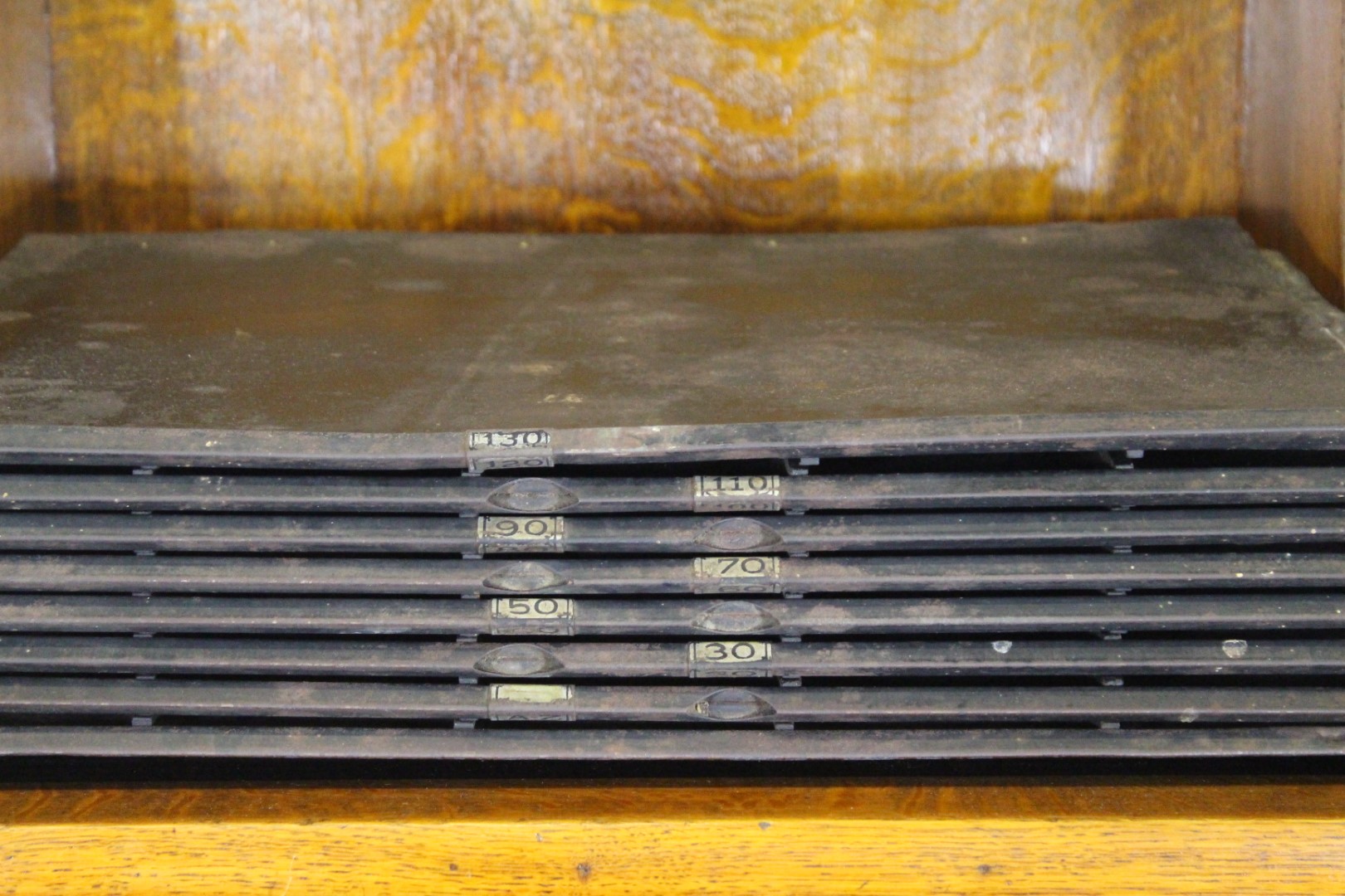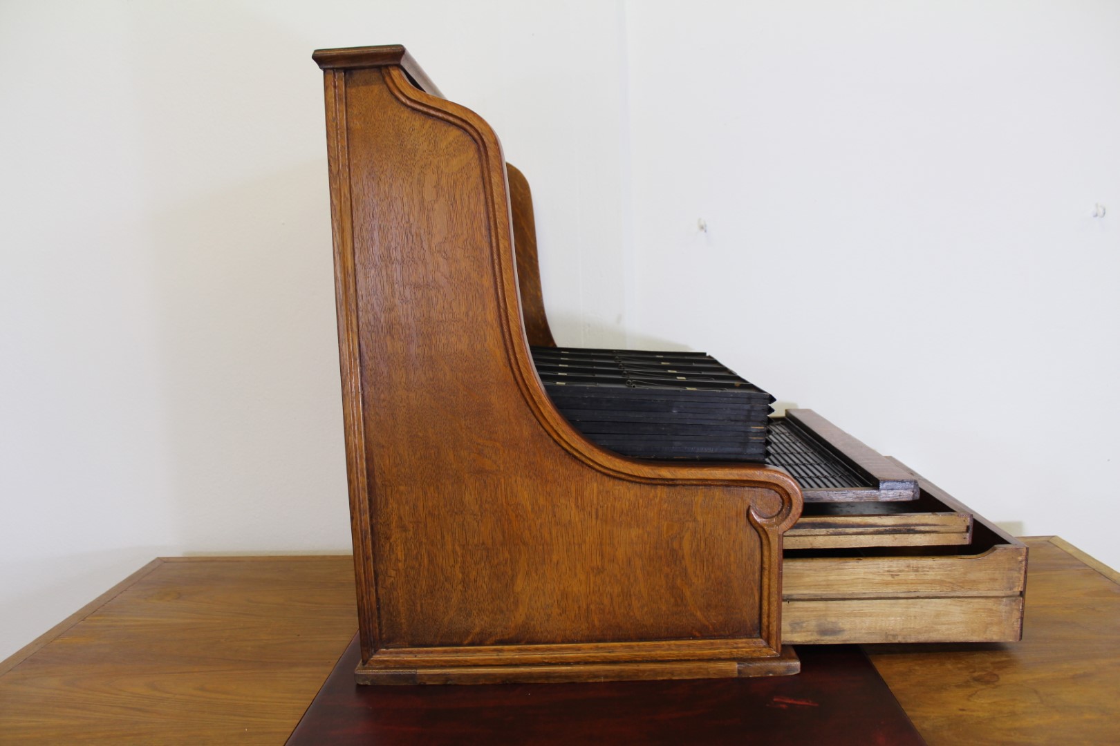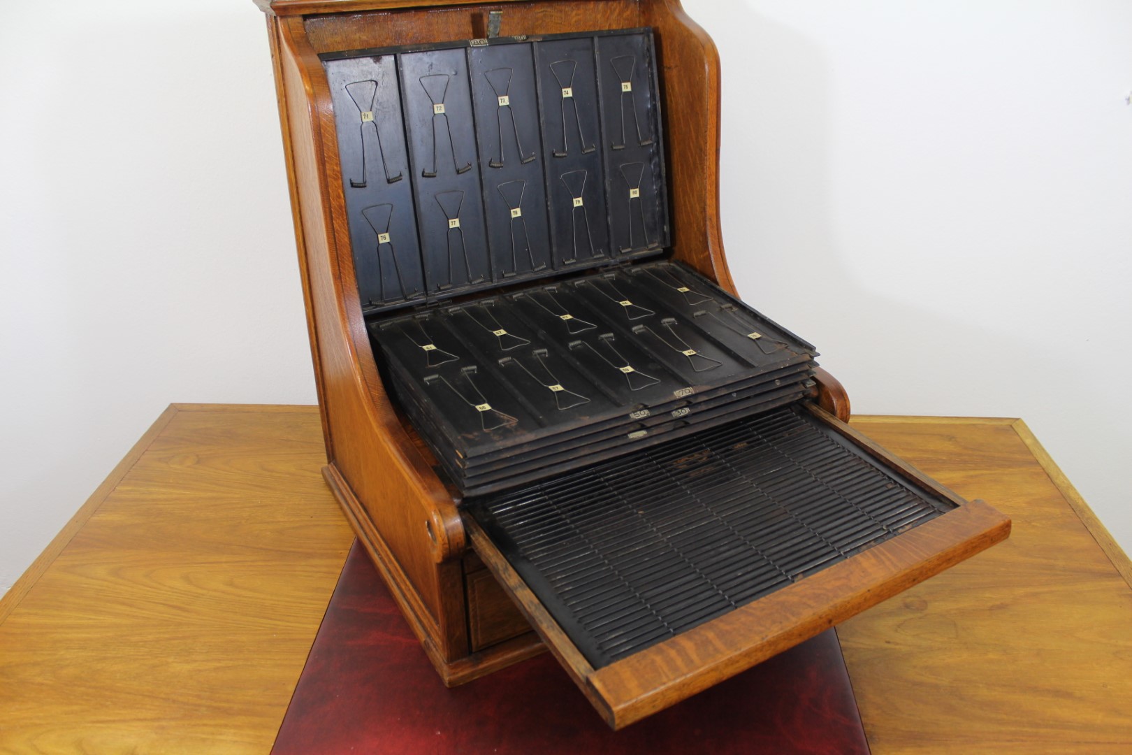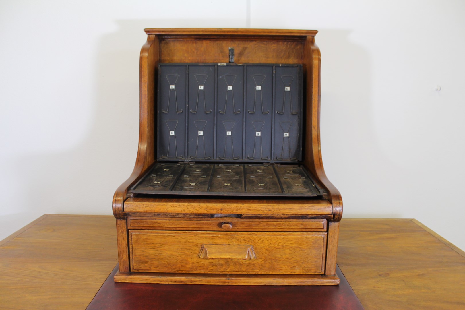 G&H Tatterton Best antique store The McCaskey Account Register, Registratore di cassa per prenotazioni da ristorante o albergo in rovere e metallo. Dispone di due cassetti utilizzati per i soldi e di due pannelli in metallo per prenotazioni e ordini.