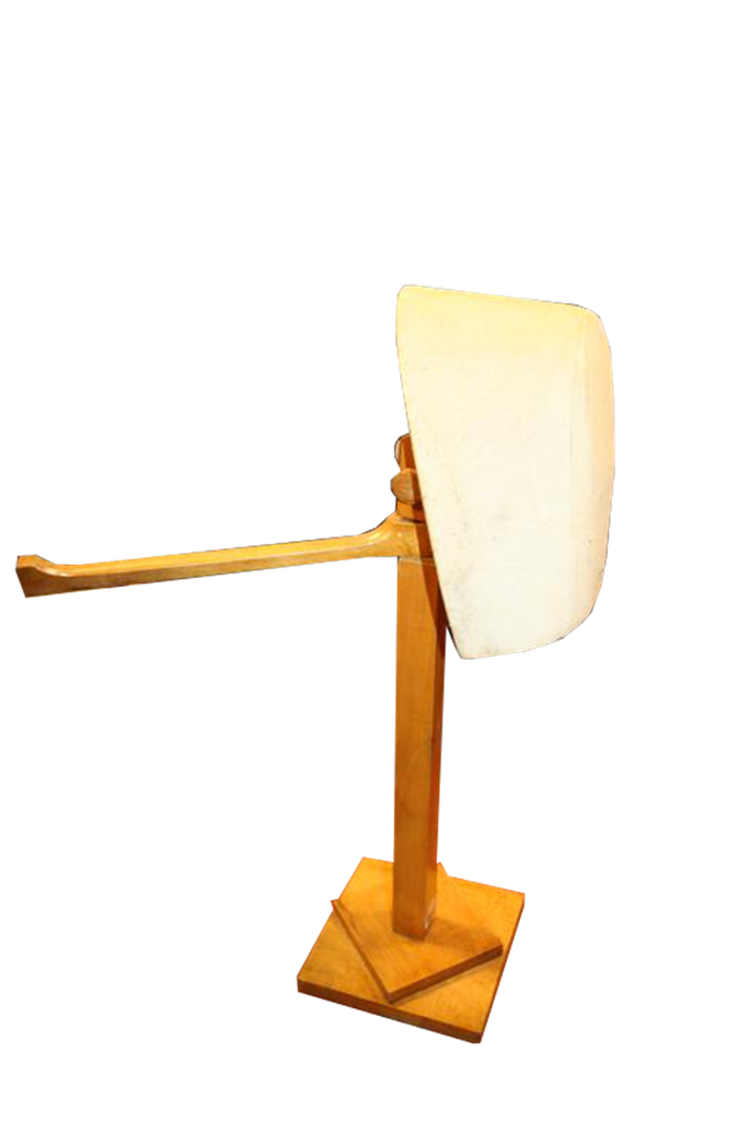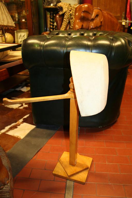Stiraspalle sartoriale da merceria, in rovere e stoffa. Originale primi del '900.
