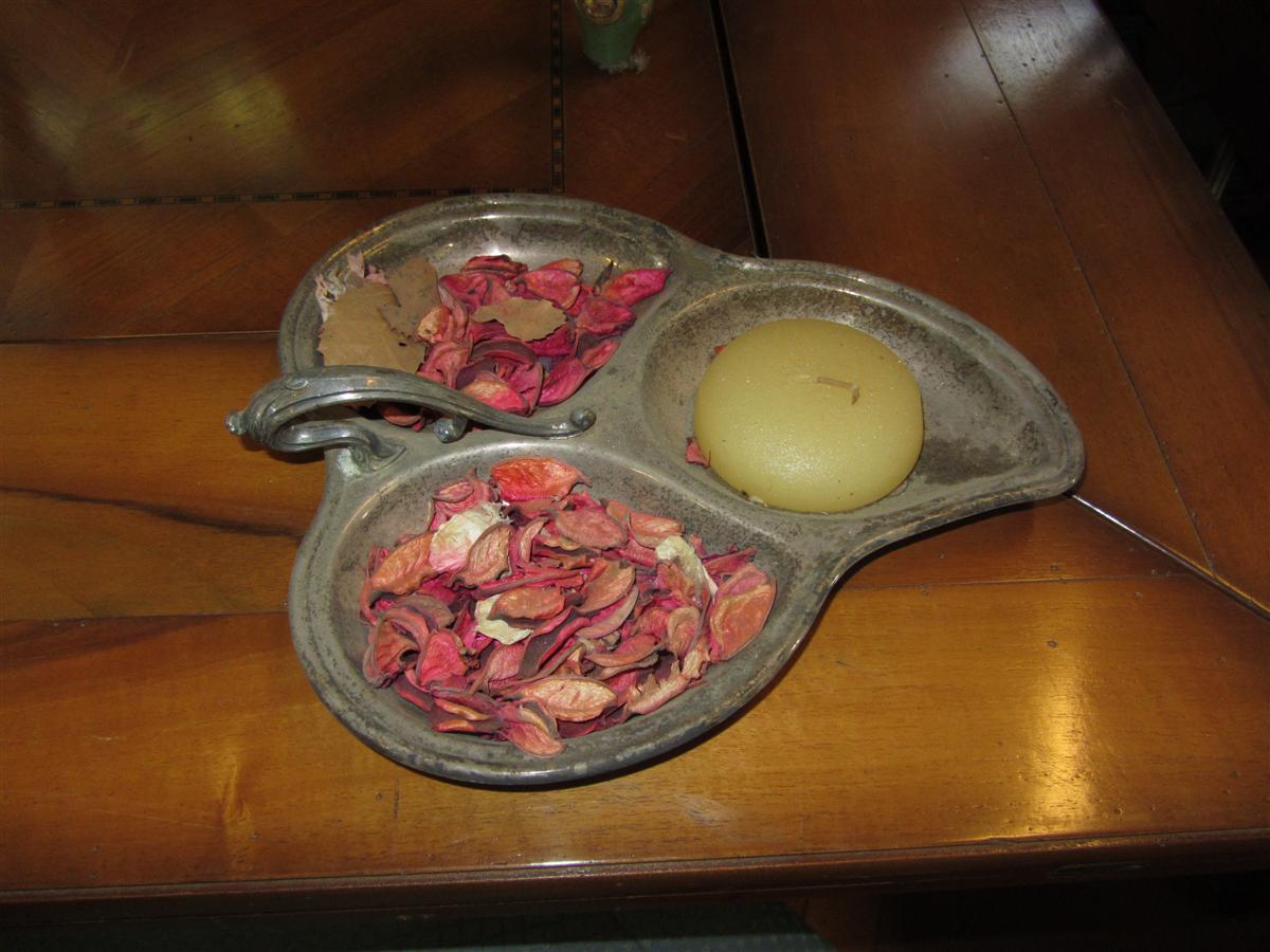 Vuotatasche in sheffiels a 3 scomparti, a forma di foglia.