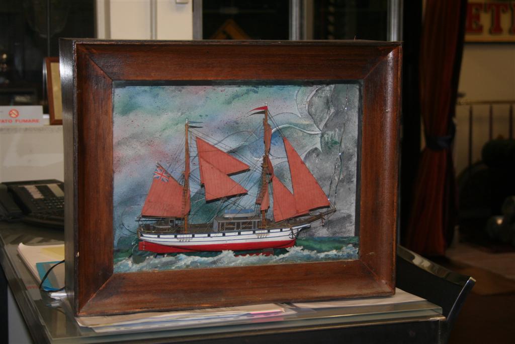 Quadro Diorama, risalente alla seconda metà dell'900, raffigurante una barca che viaggia in mare.