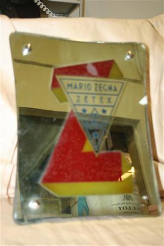 Insegna pubblicitaria luminosa con specchio lanificio Mario Zegna, Zetex. Originale da collezione.