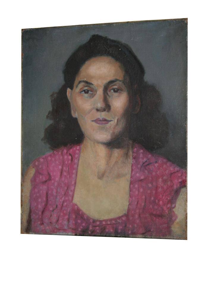 Olio su tela, ritratto di donna bruna con ricci. Artista ignoto, primi del '900.
