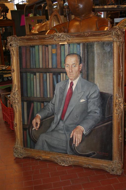 Olio su tela, ritratto maschile di un uomo borghese che fuma. Italia, anni '40.