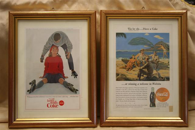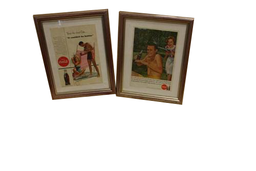 Serie di quadretti con stampe vintage pubblicitarie americane della Coca-Cola. Disponibile con cornice dorata o argentata.