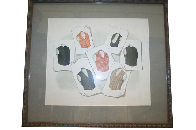 Quadro sartoriale vintage con modelli di gilet. Originale francese anni '30.