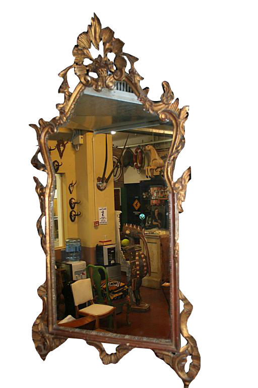 Bellissima specchiera francese dorate, con foglie e decori intarsiati