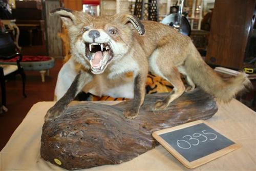 Trofeo vintage inglese di volpe impagliata che ringhia. Provenienza inglese, seconda metà dell'800.